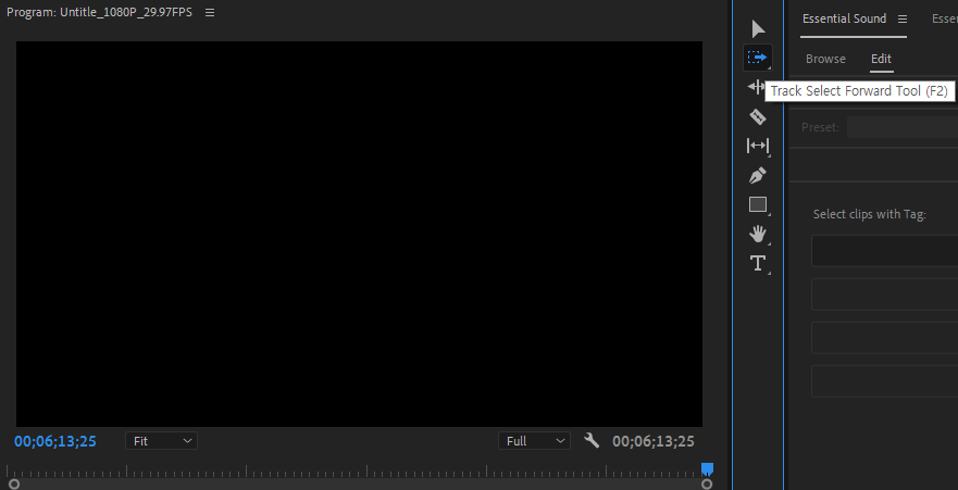 트렉 셀렉트 포워드 툴은 기본 단축키 A로 설정되어 있습니다. 그렇지만 'A'단축키도 한글키가 반영돼 있으면 다시 영문으로 되돌려서 사용해야 하는 불편함이 있어 'F2'으로 설정해서 사용하고 있습니다. 이 툴은 타임라인 선택한 클립을 포함하여 맨 뒤쪽 클립까지 모두 선택을 해주는 툴입니다. 컷 편집 시 클립을 전체적으로 이동할 일이 많아 자주 사용하게 됩니다.