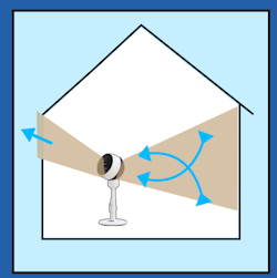 창문을 등지고 써큘레이터를 작동시키면 후면으로 흡입한 외부 공기를 빠르게 실내로 공급할 수 있습니다.